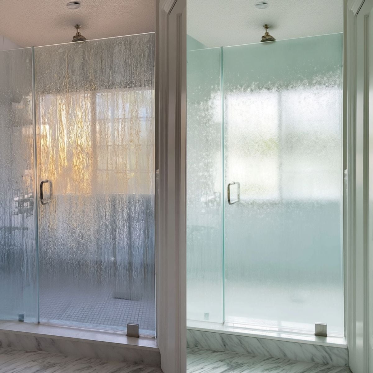 Glass shower doors are basically a magnet for everything your shower produces, soap, shampoo residue, body oils, and hard water minerals. Every time water hits the glass and evaporates, it leaves behind a thin layer of those minerals. Over time those layers build up into the white chalky film that seems impossible to remove.