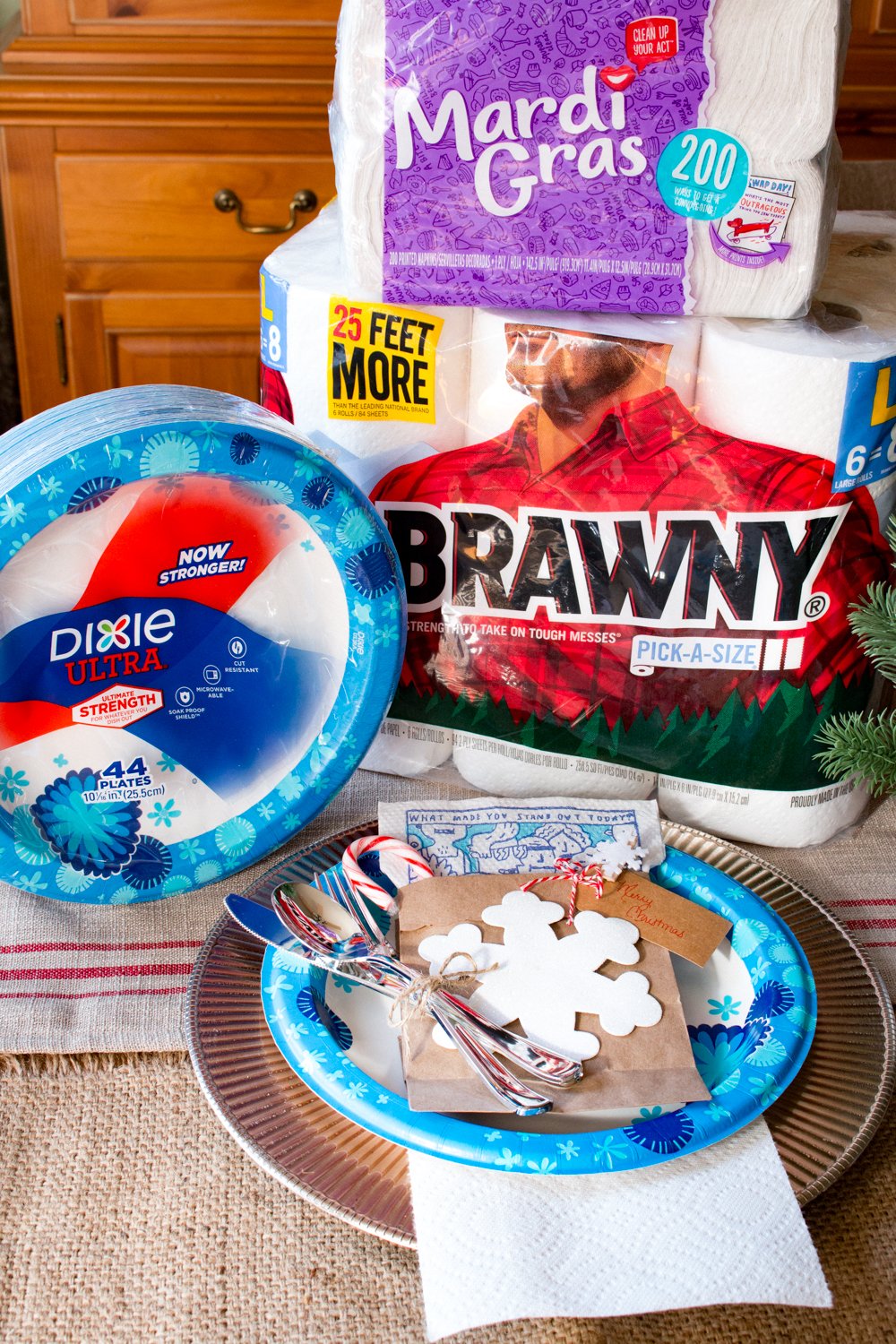 I had some of the craft items on hand but for the paper products, I went to Dollar General to stock up for the holidays and make my money go further with these awesome Georgia-Pacific essential products and starting 11/19/17 through 12/23/17 only, Buy 3 Participating Products, Save $3! - details here! (Valid on Angel Soft® 12 Family / 12 Big Lavender, Sparkle® 6 Roll, all QNUSS 9 Mega and QNUP/QNUSS 12DR, Dixie® Everyday 9in 86 ct, Dixie Ultra® 10in 44ct, Brawny 6 Large Roll, Mardi Gras 200 ct)