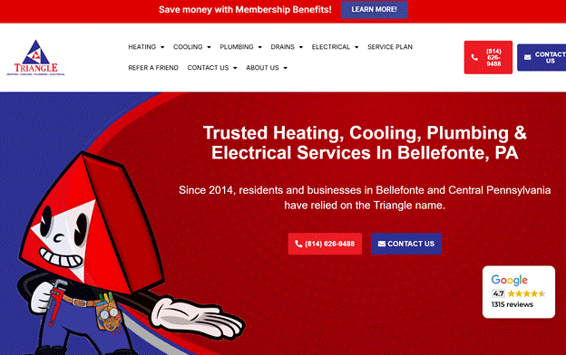 Operating since 2014, Triangle offers same-day AC unit repairs at reasonable prices. It serves homes in Bellefonte, PA, and surrounding areas. The company has skilled, knowledgeable technicians who are licensed and insured. Customers can receive complimentary second opinions if they are concerned about the initial diagnosis.
