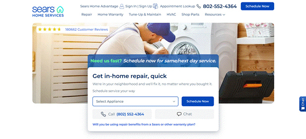 | Sears Home Services | Experience dating back to 1886 | Transparent pricing | Same-day or next-day appointments |