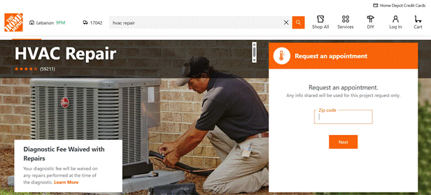 The Home Depot offers AC repair services to homeowners nationwide. It can even provide a complementary second opinion on assessments in case you are unsure about the initial inspection. To take advantage of the company’s process, you must first request a diagnostic test, then get recommendations and an estimate. Finally, the skilled staff will either repair or replace the AC unit.