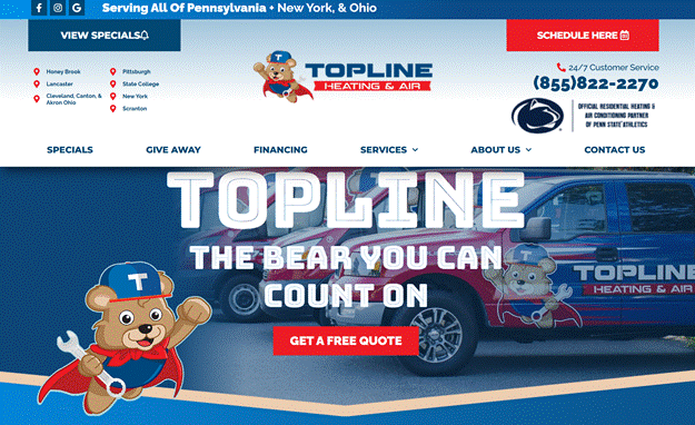 Topline is a licensed, bonded and insured contractor that serves Pennsylvania, Ohio and New York. A knowledgeable HVAC expert can identify the issue with your system and discuss potential solutions, such as a repair or replacement. It offers 24/7 customer service.