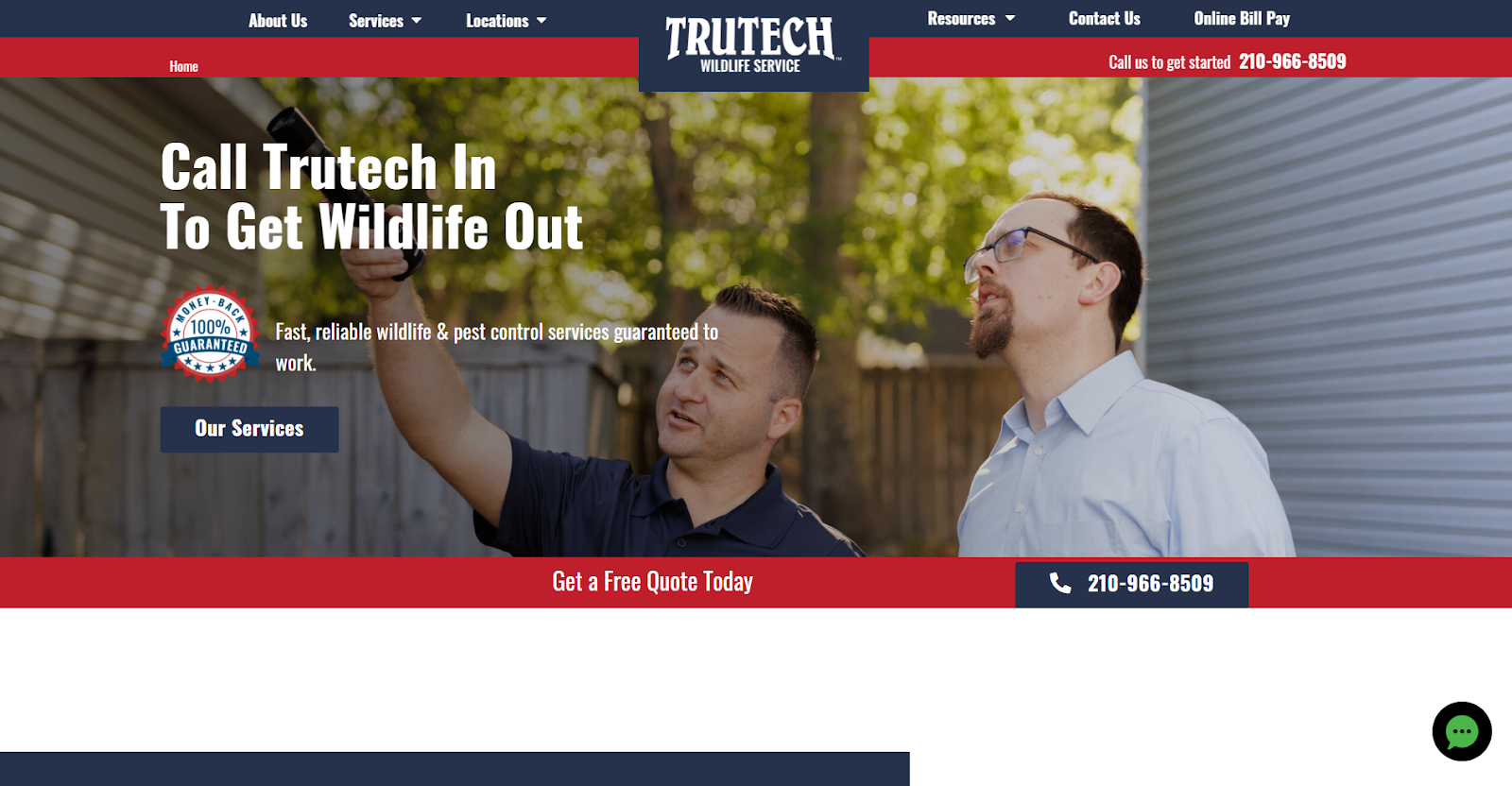 TruTech Wildlife Service practices human capture and removal of nuisance animals. Its staff undergoes over 160 hours of hands-on and virtual training to ensure extensive knowledge of wildlife and safe handling practices and receives continuous on-the-job coaching each month.